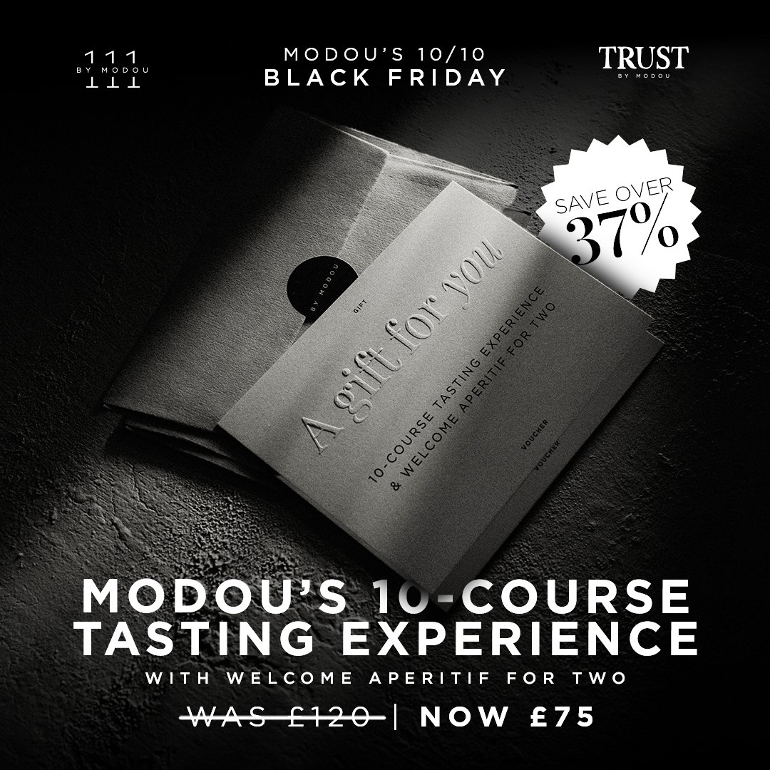 Valid for use at 111 by Modou for the 10-course tasting menu on Thursday - Saturday only. Valid from 26th December 2025 to 31st March 2026.